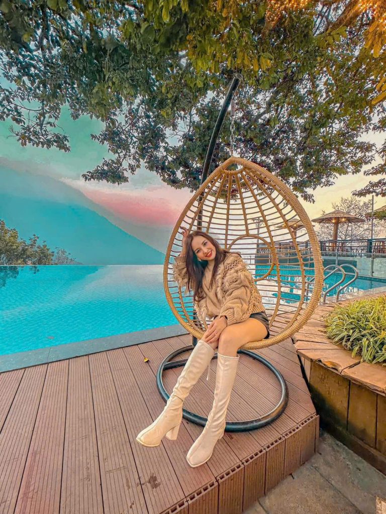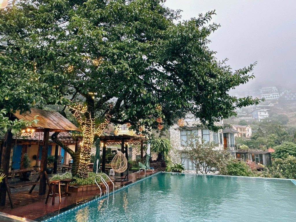 Bể bơi dưới gốc chay cổ thụ